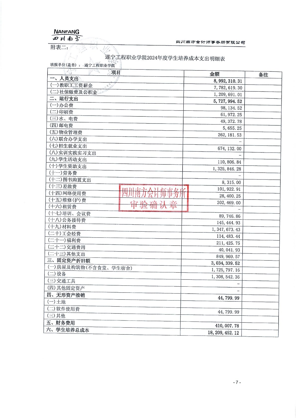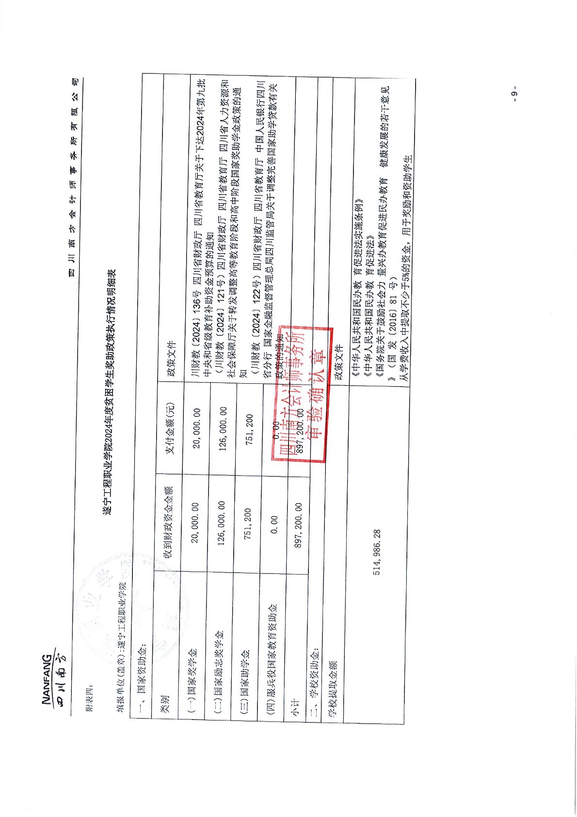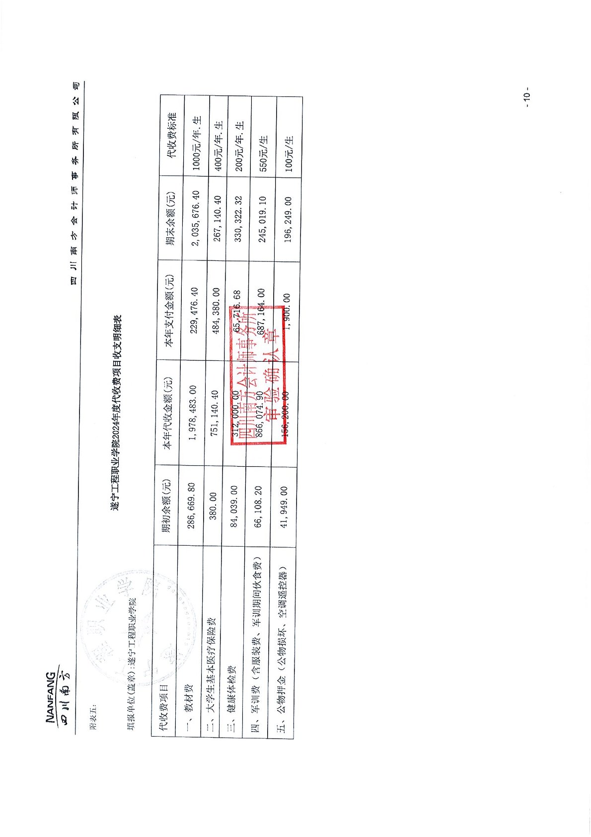遂宁工程职业学院2024年学费、住宿费、服务性收费和代收费收支情况及贫困学生奖助政策情况审计报告